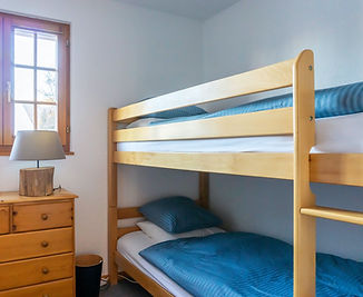 The bunk beds are full-sized, suitable for adults well as children. Window looks out on garden and has a view of the Bletschorn.